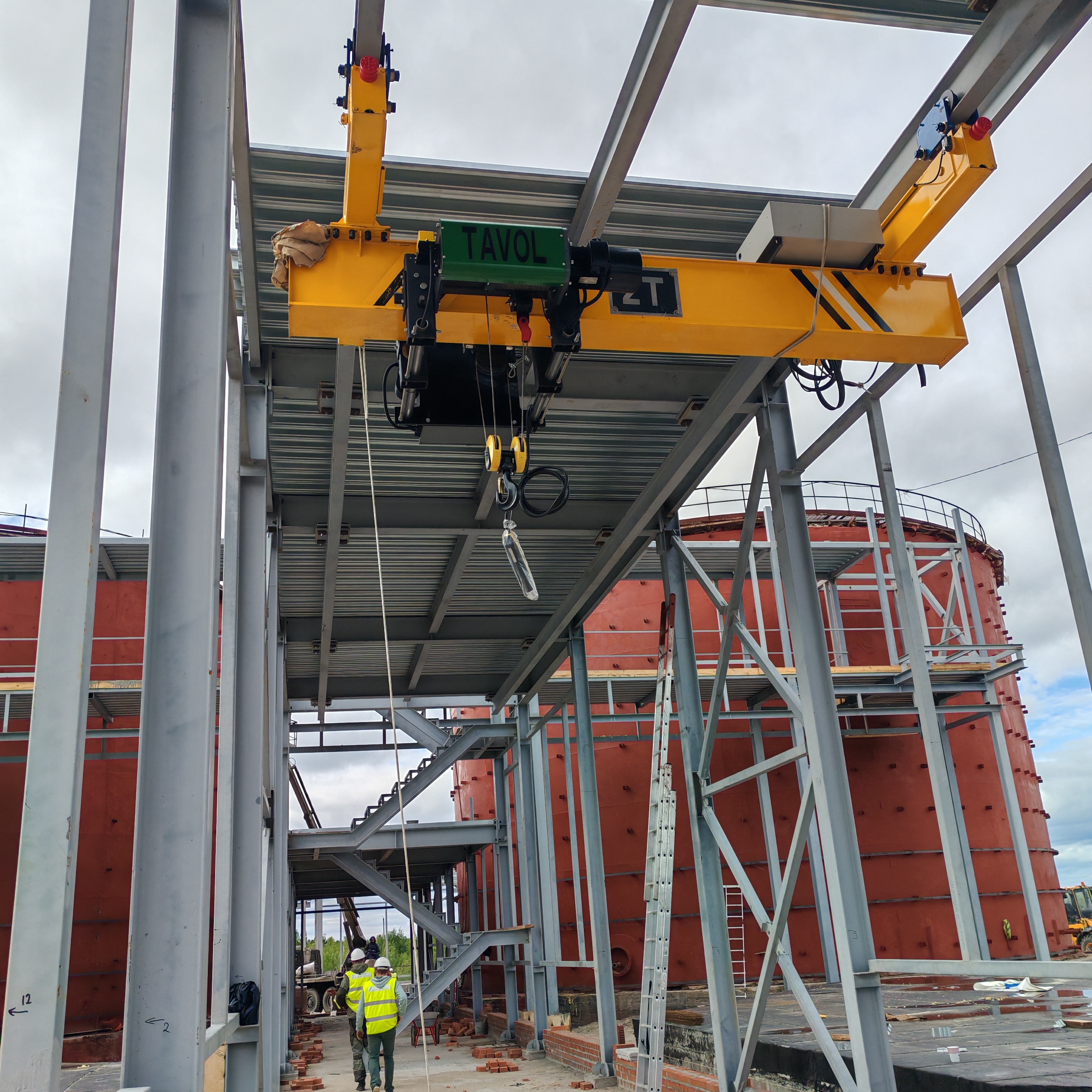 Под структурой бега над головой краны: